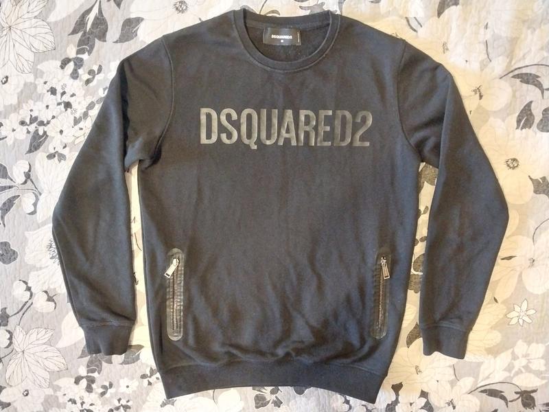 Свитшот мужской Dsquared2. Стан - идеальный. Цвет - насыщенный черный, не выгорает. Присутствуют два кармана на молниях. Размер по наборке М. Замеры: плечи - 43 см, грудь - 53 см, рукав от плечевого шва - 63 см, длина по спине - 67 см.