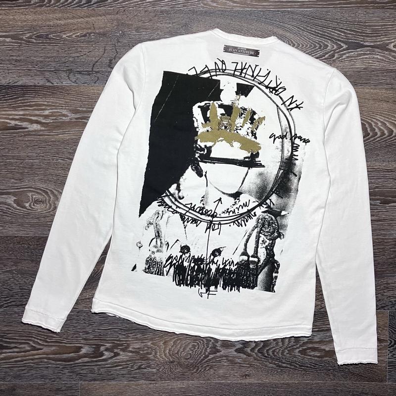 Очень красивая вещь. На спине изображен портрет королевы Елизаветы а также присутствуют кожаные и металлические элементы, обращайте внимание на детали. Состояние идеальное. Размер S/M.