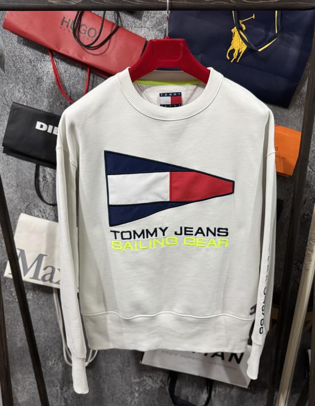 Світшот чоловічий та жіночий Томмі Джинс Сейлінг Ґір. Від легендарного американського бренду. Дуже круто виглядає на тілі. Білосніжного кольору зі стильним комбінування . Модель оверсайз. Подовжені резинки на рукавах. Масивний вишитий логотип з переду. Вишитий логотип на рукаві. Нашитий логотип з переду біля шва. Розмір: Жіночий M, Чоловічий S. Стан 10/10, ідеальний. Торг присутній при повній оплаті. Дивіться мої інші оголошення. Підписуйтесь речей більше на ******** каналі ******************************