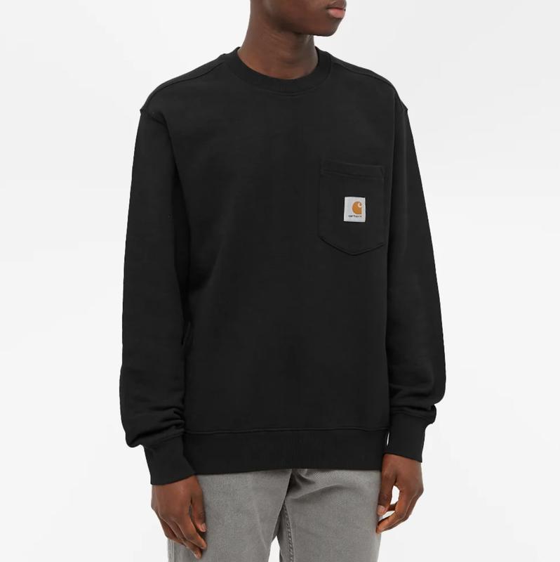 Carhartt WIP Pocket Sweatshirt K126 Black Стильный и удобный, этот черный свитшот от бренда Carhartt WIP чрезвычайно прост. Сшит из чистого хлопкового джерси и отделан плотным трикотажем в рубчик, он имеет накладной нагрудный карман и фирменный знак золотого сечения бренда. 100% бавовна Нагрудна кишеня Тканый фирменный патч Ребристые планки