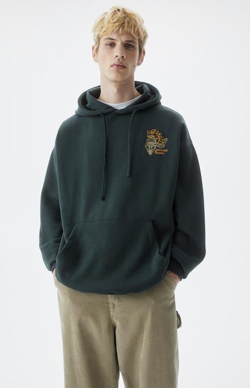Зеленое хлопковое худи с контрастным изображением змеи и карманом-кенгуру спереди.