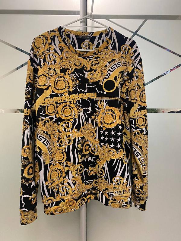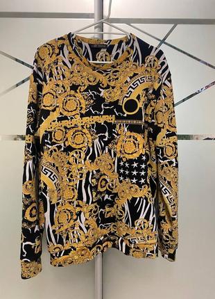 Класний чоловічий світшот у харктерно жовто-чорному забарвленні із принтом Versace. Оригільно виглядає. Незвична річ, що привертає на себе увагу. Стан: Ідеальний Розмір XL -комфортно сідає на L Склад: 100% бавовна Виробник: Італія Виміри за запитом.