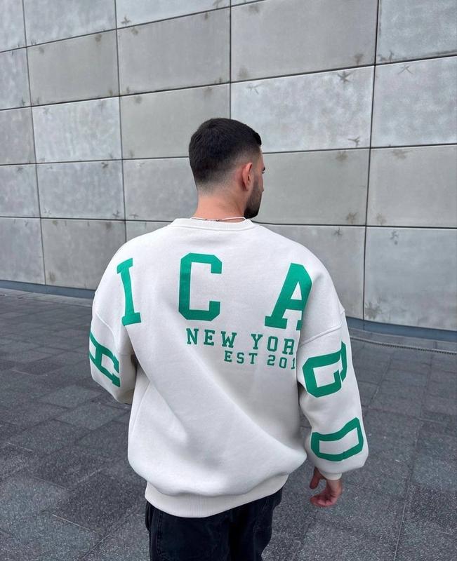 Батник Man Chicago Код 040/1 Ткань: Трехните на флисе Размер: 48-50(унисекс) Цвета: бежевый Трендовый батник с надписями на спине Тепленький на флисе. Качественная накатка