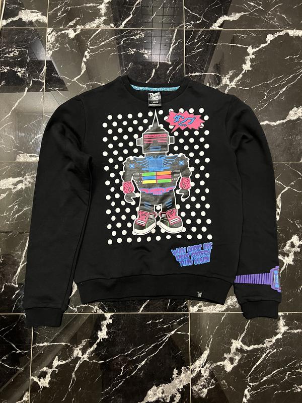 Свитшот французской марки DUMPE FRESH с крутыми принтами и фурнитурой. Размер L.