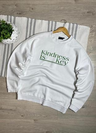 Оверсайз свитшот в белоснежном цвете. Плотный и качественный материал. Свободный фасон, узкий воротник. Внутри на микрофлисе. Круто смотрится на теле. Состояние отличное (5-е фото нюанс) По бірці XL Подмышки 71 Рукав от шва воротника 83 Рукав от подмышки 49 Длина 72.5