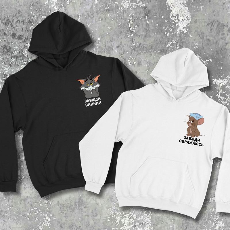 Парные худи/свитшоты с принтом - всегда обрежусь/всегда винный!