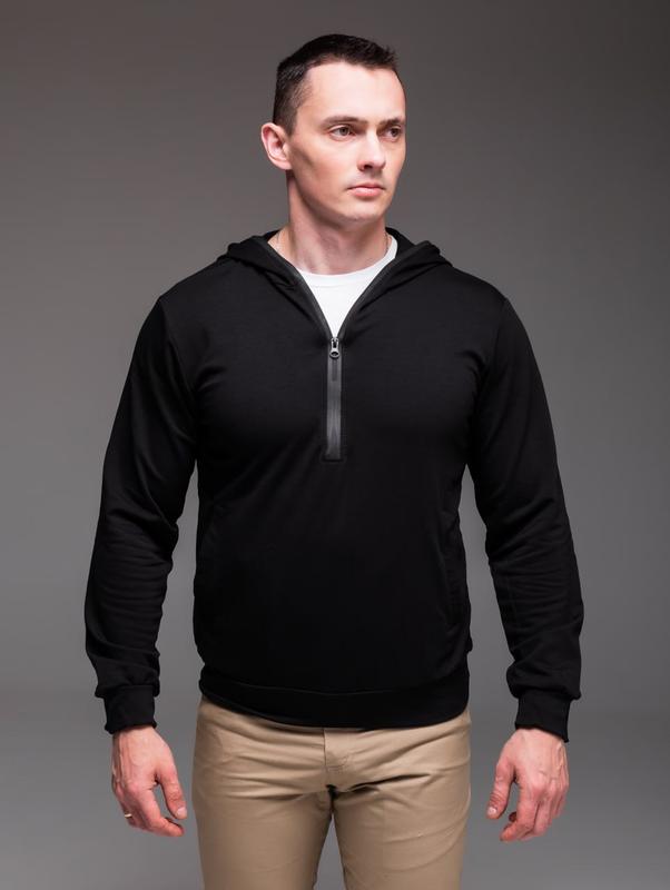 ‼️ Новая модель!!️ 🔶 Артикул: 2266 👔 Черный мужской худи с застежкой 📐Размеры: S,M,L,XL 👍Материал: хлопок 80%. полиэстер 15%, эластан 5%. застежка, капюшон. Кишеня - кенгуру 🧷 Производитель: Украина 🇺🇦