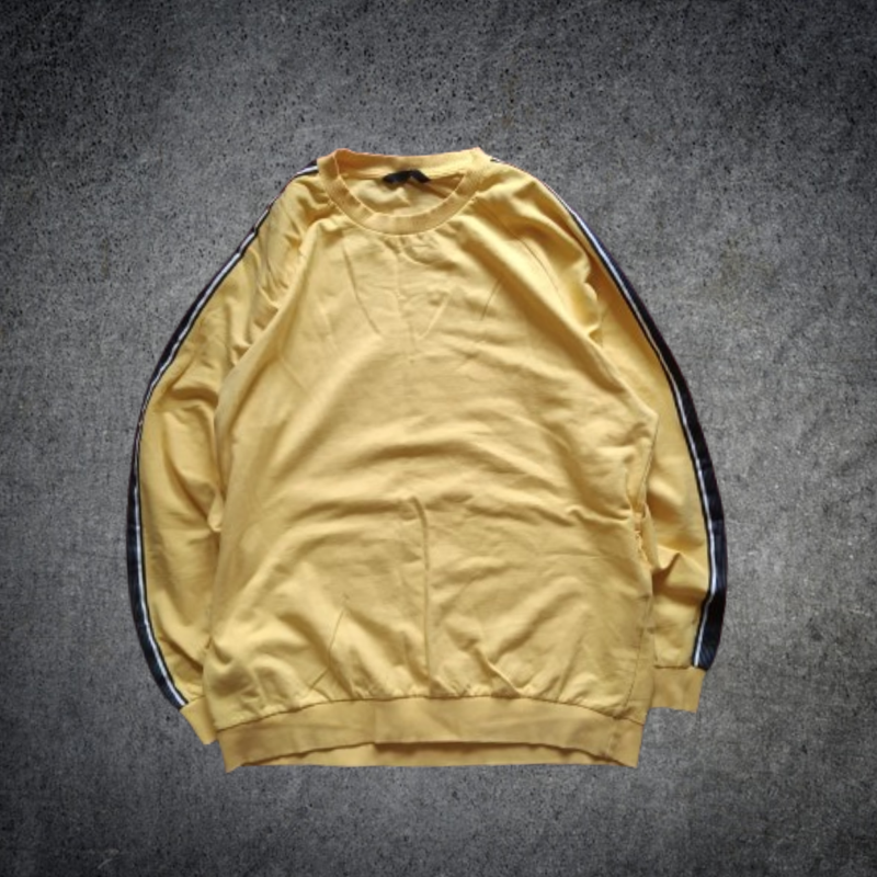 свитшот чистый желтый, по бокам на рукавах чероно белые полоска стан: хороший размер: L/XL (замеры в лс)