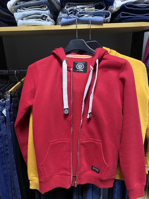 Свитшот мужской на молнии, утепленный. Производитель Турция. Новый. Размер М красный и желтый. Рукав 63 см., обхват грудей 51см.*2. Высота изделия 56 см. Размер S красный. Рукав 63 см., обхват грудей 48 см. * 2. Высота изделия 56 см.