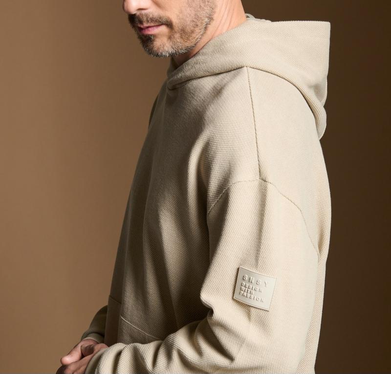 Фирменный свитшот с карманом кенгуру. Линия плеч опущена. Материал: 53% хлопок, 47% полиэстер. Цвета: черный, бежевый. Размеры: ХС, С, М, Л, 2ХЛ, 3ХЛ