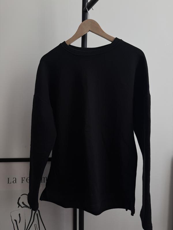 Черная базовая кофта украинского бренда Custom. Внутри на флисе тоненьким. Пишет размер L, но лучше подойдет на M, на S будет немного оверсайз.