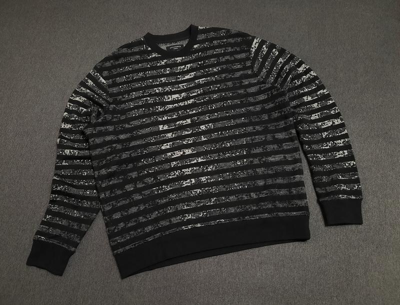 Оригинальный свитшот от бренда All Saints, удобный в носке.красиво будет смотреться на теле, можна носить как под классические брюки так и под чиносы или джинсы и сочетать с другими цветами, приятный и мягкий на ощупь,меет красивую текстуру материала и очень красивый принт, дополнит плотный и очень эластичный поэтому не будет ограничивать движения при ношении.манжеты на расшатанные и хорошо выполняют свои функции, свитшот выглядит очень красиво и стильно.стан нового Ширина между подмышками - 65 см Длина - 76 см Плечи - 52 см Рукав от плеча - 70 см