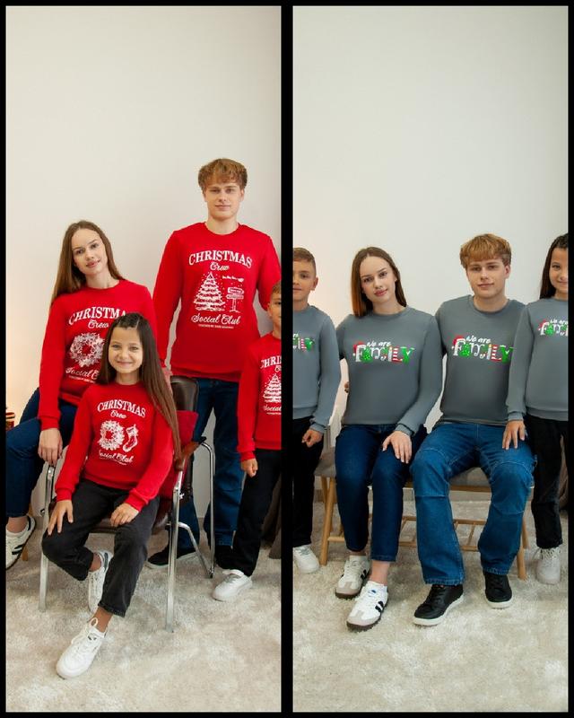 распродаж утепленных свитшотов детские 92-140р по 250грн женские 44-52р по 320грн мужские 48-56 по 360грн Базовый свитшот свободного кроя из однотонного футера с начесом высокого качества. Модель с длинными рукавами на манжетах, воротником-стойкой из эластичного материала, с манжетом в низу изделия. По перед изделии нанесен рисунок методом шелкотрафаретной печати с новогодним принтом. Можно создать образ family look с моделями 2462, 2461, 2463. Полотно: футер с начесом пенье Состав: 100% хлопок Советы по уходу: стирать при температуре не более 30°C. Параметры модели: обхват груди 91, талия 80, бедра 101, рост 177 см. Размер одежды 48
