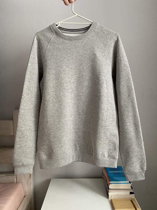 Базовий чоловічий світшот сірого кольору від Mango. Має мʼяку підкладку всередині. Новий, у відмінному стані. Склад: 66 % - бавовна, 34 % - поліестер. Розмір М.