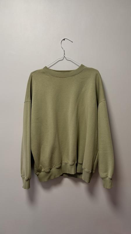 Фісташковий світшот на флісі розмір М/Л, стан дуже хороший, але має на спині пляпки, якість топ