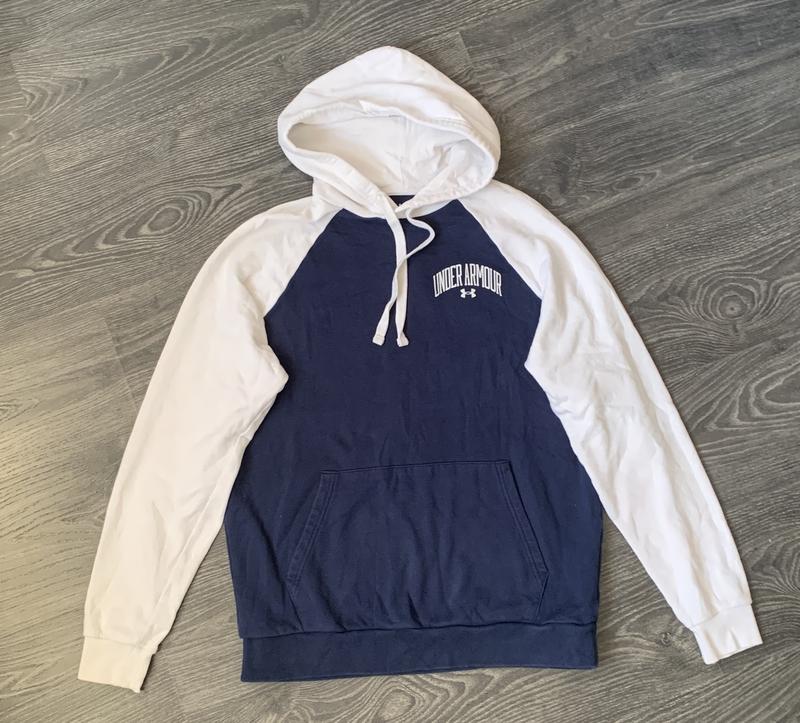 Оригінальне худі від Under Armour, синього кольору. Створений для комфортного та стильного використання. Заміри: довжина 69 Ширина під рукавами 57 Рукав від горловини, капюшона 77