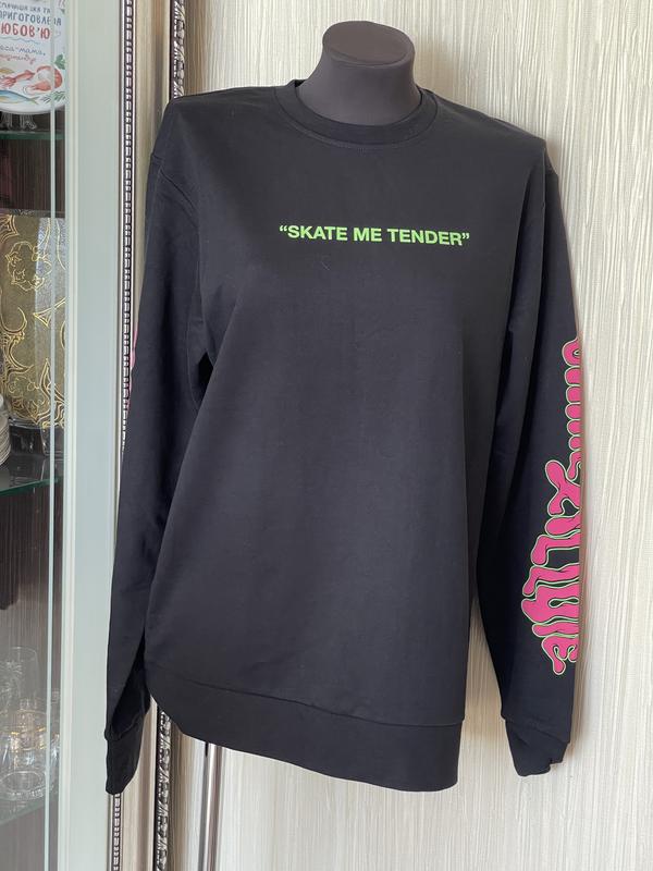 Новый яркий свитшот Cropp. Состав 52 процентов хлопок. Цвет насыщено черный с яркими принтами. Не утепленный, но не тонкий как трикотаж плотный держит форму. замеры плечи 49 рук 70 пог 56 длин 73