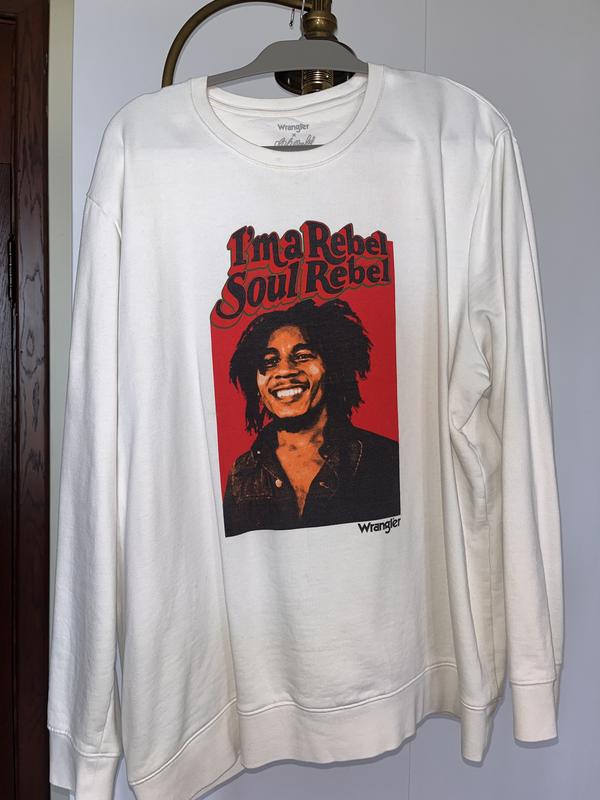 Світшот Wrangler серія Bob Marley Розмір XXl ( підходить і на Xl) Склад : 100% бавовна Заміри : Напів обхват плечі : 53 см Напів обхват талії : 71 см Довжина рукава від плеча 67см Довжина світшоту 75 см