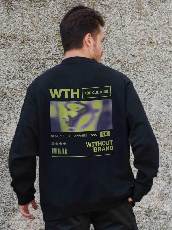 Чоловічий утеплений оверсайз світшот на флісі з принтом without pop culture black