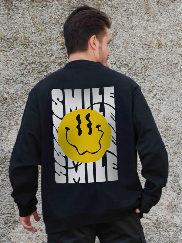 Мужской утепленный оверсайз свитшот на флисе с принтом without smile black