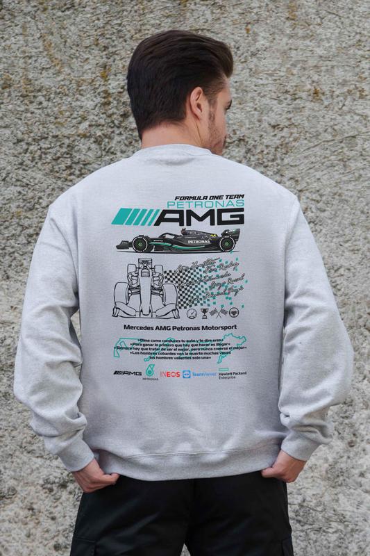 Мужской утепленный оверсайз свитшот на флисе с принтом without amg gray