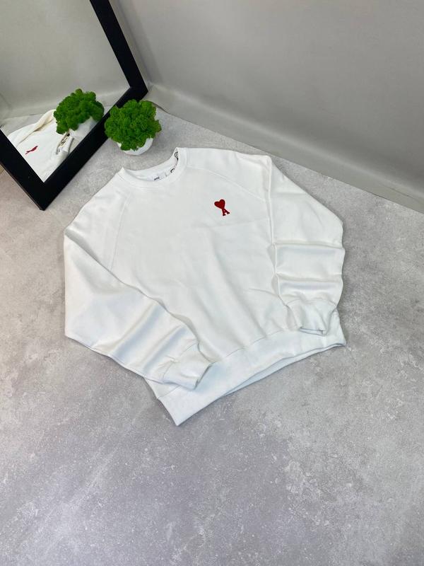 🎉Світшот Ami білого кольору 🟢Матеріал: бавовна 100% тринитка діагональ 🟢Крій Oversize 🟢Брендові бірки та пакування 🟢Розміри: S M L XL 🟢Осінь-весна