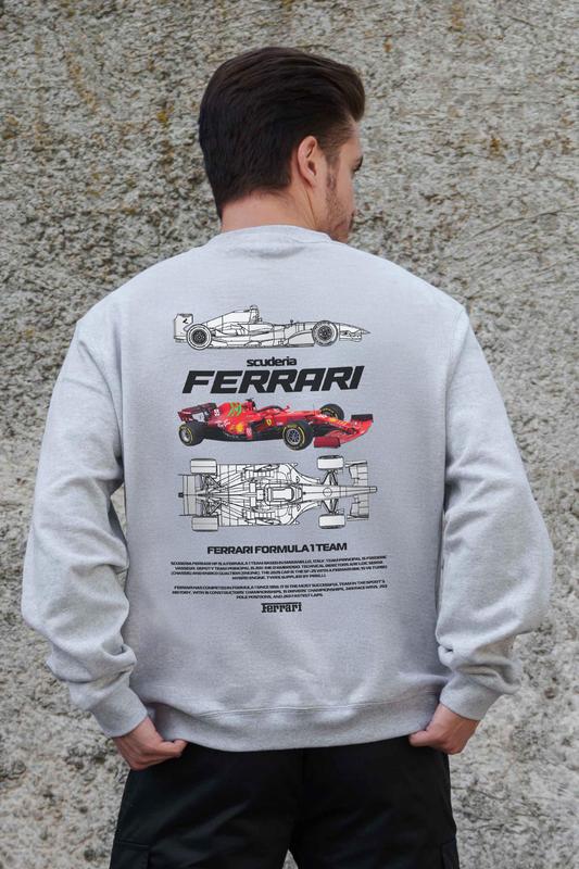 Мужской утепленный оверсайз свитшот на флисе с принтом without ferrari gray