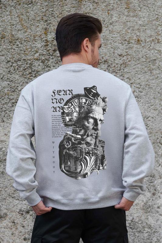 Мужской утепленный оверсайз свитшот на флисе с принтом without greek gray