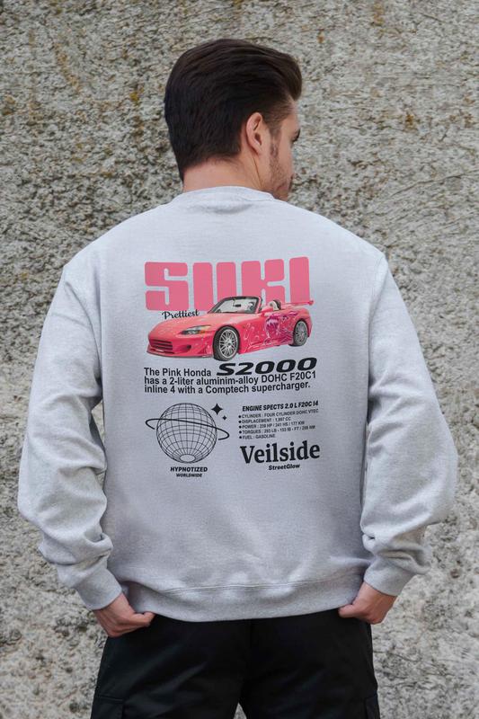 Мужской утепленный оверсайз свитшот на флисе с принтом without suki gray
