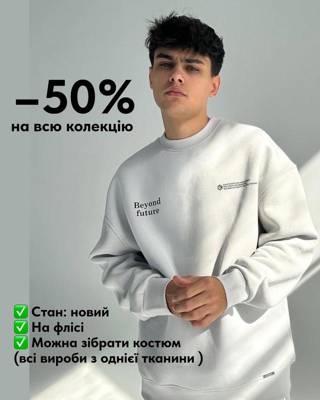 Білий світшот із принтом на спині та невеликим написом спереду. Мінімалістичний дизайн, комфортна oversize-посадка. Щільна флісова тканина — м’яка, тепла, приємна до тіла. Усі вироби (світшоти, худі, джогери) виготовлені з однакової турецької тканини на флісі, тому їх можна легко поєднувати між собою в костюми. 📏 Розмір: M, L, XL 🎨 Колір: білий 🧵 Склад: 60% бавовна / 40% поліестер 👕 Посадка: oversize, вільний крій 🔹 Стан: новий 💸 Ціна: 1980 грн → 990 грн (-50%) 🇹🇷 Виробництво: фабричне, Туреччина 📦 Наявність: Одеса 🚚 Доставка: Нова Пошта 💬 Матеріал щільний, не просвічує, не кошлатиться. Принт стійкий до прання. Добре тримає форму та не сідає після прання. ✉️ Пишіть у чат — допоможу з вибором розміру або надішлю додаткові фото.