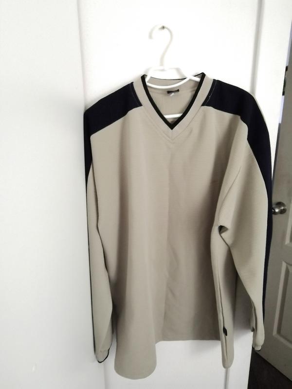 Мужской винтажный свитшот (лонгслив, кофта) Versace из 100% хлопка Состояние: очень хороший, единственный дефект на последнем фото Цвет: бежевый с черными рукавами Размер: ХХL Состав: 100% хлопок Замеры: длина по спинке: 79см ширина под подмышками: 66см рукав: 61см