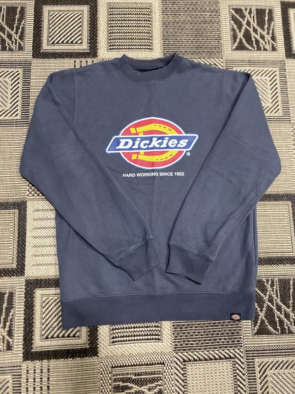 Чоловічий світшот Dickies з великим фірмовим логотипом, теплий Розмір: S Заміри: плечі 42 см, напіобхват грудей 54см, довжина 64см, рукава довжина 64см Трішки потрісканий принт
