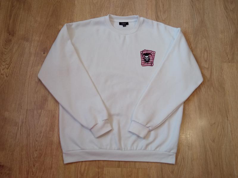 Кофта мужская свитшот SMOG Relaxed Fit. Размер L, ширина (полуобхват груди): 62,5 см, длина: 73,5 см; длина рукава от плечевого шва: 61 см, от горловины: 81 см. Цвет белый. Стан хороший.