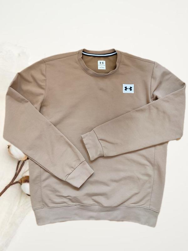 Бежевий світшот від Under Armour. Склад бавовна та еластан. Дуже гарно виглядає. Стан дуже хороший, тільки є недолік на лівому рукаві. Показала на фото. Не в розтягненому стані,не помітний,і легко виправляється.Врахований в ціну. По бірці розмір L Пог 52 см Рукав 62 см Довжина 63 см