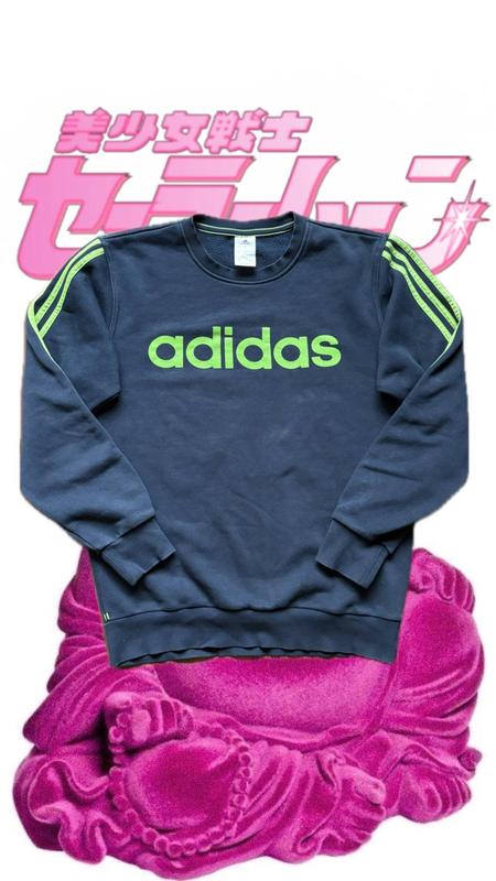 Опис: Продам фірмовий спортивний світшот від Adidas у чудовому темно-синьому кольорі з яскравими салатовими акцентами. Річ оригінальна, про що свідчать усі внутрішні бірки та QR-код. Головні характеристики: • Стан: Ідеальний. Колір насичений, логотип і принти без тріщин та дефектів. • Дизайн: Великий салатовий напис "adidas" на грудях та класичні три смужки на рукавах. Ззаду знизу є додатковий світловідбиваючий елемент з логотипом. • Матеріал: Якісний та теплий трикотаж. Склад: 70% бавовна, 30% поліестер. Внутрішня сторона з м'яким начісом (флісом), що дуже приємно до тіла. • Оригінальність: Вироблено в Камбоджі (Made in Cambodia). Є захисна голограма та артикули на бірках. Розмірна сітка (згідно з біркою): • Розмір: S (US/UK/D/I/E). • Для японського ринку (J): вказано M. • Підійде на чоловічий S або як невеликий оверсайз для тих, хто носить XS.