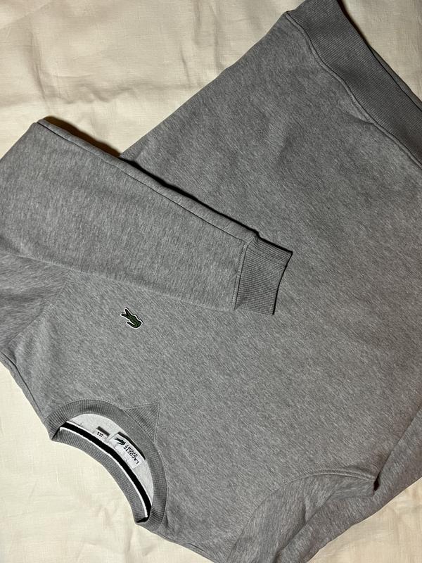 Lacoste чоловіча кофта / світшот Колір: сірий Розмір: S (пів обхват 50см, довжина по спині 62 см, довжина рукава 60см, пів обхват знизу на резинці 45см) Стан: ідеальний Матеріал: 83 бавовна 17 поліестер Особливості: класичний крій круглий виріз логотип крокодила спереду на грудях з лівої сторони