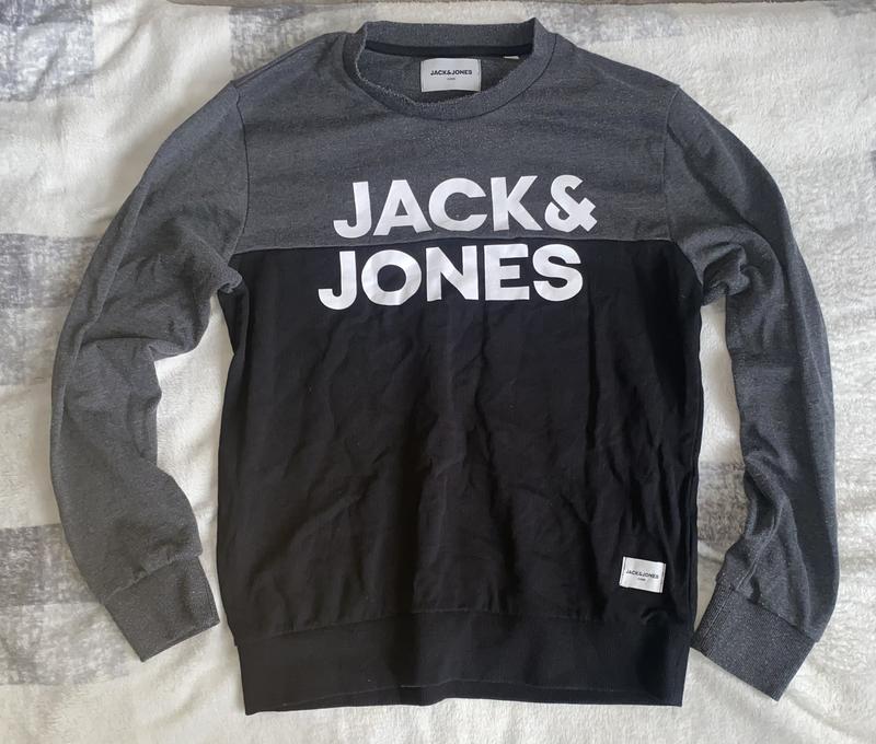 Бренд: Jack & Jones Тип: світшот / кофта без капюшона Колір: темно-сірий + чорний Дизайн: контрастна вставка, великий логотип Jack & Jones спереду Рукав: довгий Матеріал: бавовна з домішкою (м’який, приємний до тіла) Посадка: пряма, зручна Стан: хороший