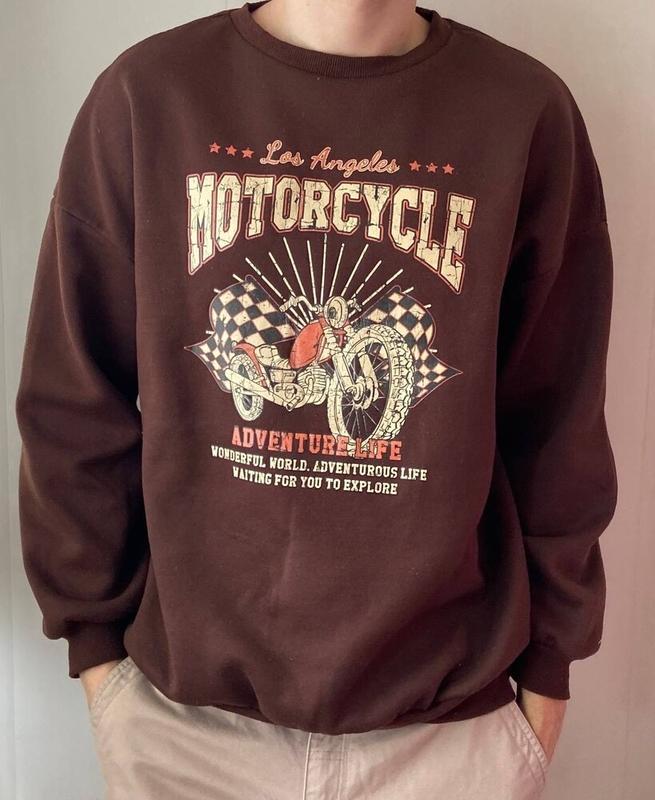Чоловічий світшот Motor cycle. Колір коричневий. Розміри L,XL. Модель із трикотажної тканини. Рукава довгі з манжетами. Склад:100%бавовна.