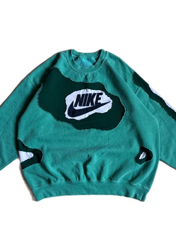 Унікальний світшот Nike з неповторним дизайном, створеним вручну. Яскравий зелений колір з контрастними чорно-білими елементами. Розмір: L-XL Точні заміри: • Обхват грудей: 67 см • Довжина рукава: 76 см • Довжина спини: 67 см