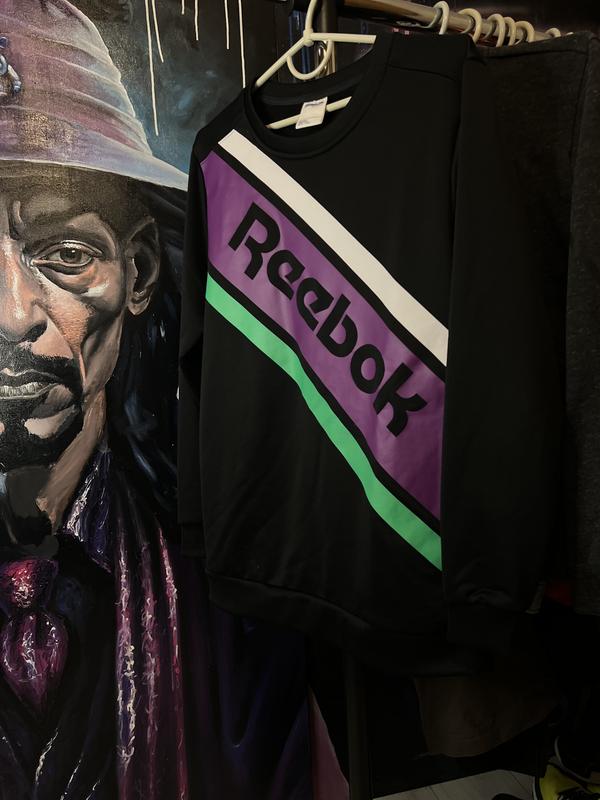 Reebok Retro Logo Sweatshirt (100% оригінал) — стильний світшот у вінтажному стилі від Reebok з яскравим діагональним логотипом. Чорна база + фіолетово-зелений принт виглядають дуже ефектно. Ідеально під streetwear та casual образи. Розмір: S Стан: б/в 9/10 (без дірок, плям, принт у відмінному стані) 100% оригінал Reebok Матеріал: м’який бавовняний трикотаж, приємний до тіла Посадка: класичний крій, комфортна в носінні Ціна: 850 грн Пиши в особисті — швидко відповім, зроблю додаткові фото/відео/заміри casual_sup в нього дешевше