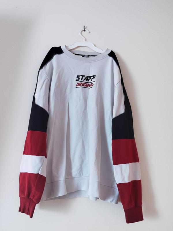 Трехцветная кофта свободного кроя. Ткань приятная к телу, манжеты плотные, не растягиваемые. Модель оверсайз, не сковывает движений. Состояние отличное.