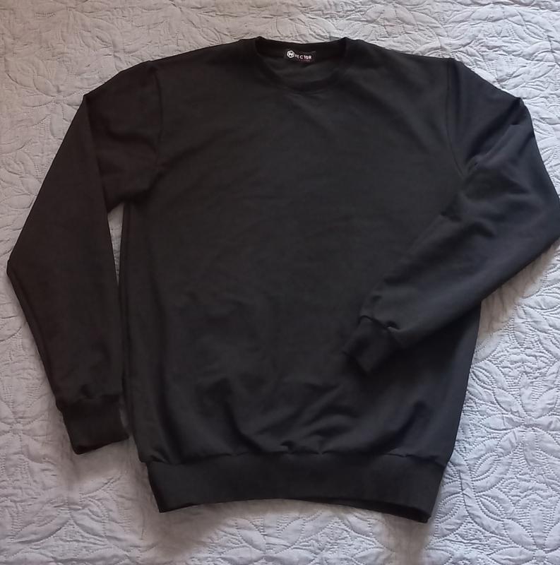 Базовый мужской свитшот черного цвета. Изготовлена из трикотажа, с использованием хлопка с добавлением эластана для лучшей эластичности. Длина -67см Полуобхват ширина-51см Ширина плеча-14см Длина рукава-62см с манжетом мир Характеристики и особенности: Тип изделия: Свитшот или батник. Материал: хлопок Детали: Круглый вырез горловины, эластичные манжеты на рукавах и по нижнему краю изделия. Назначение: Повседневная одежда (casual style), подходит для прогулок или в качестве базового элемента гардероба.