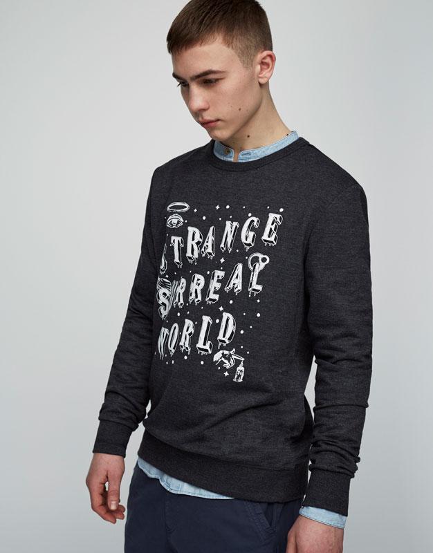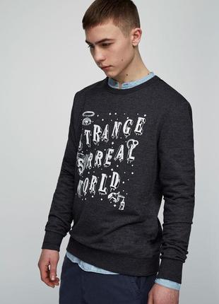 Стильный мужской свитшот от Pull&Bear (Испания). Актуальный текстовый принт!! Мягкая приятная ткань!! Трикотажные манжеты. Небольшой начес. Отличное качество!! Состав: 51% полиэстер, 47% хлопок, 2% эластан. Размер: XL