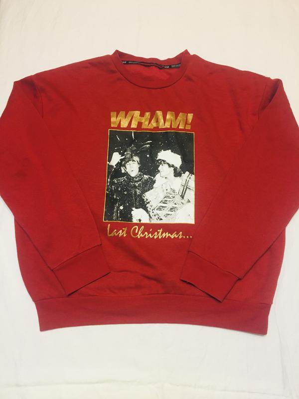 Классный свитшот с фрагментом из клипа Wham Last Christmas - размер на бирке s {плечи-56 спадающие, ПОГ-60 длина-60