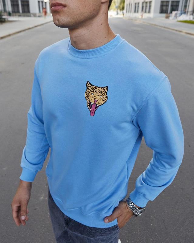 Свитшот Flex - Леопард, голубой цена: 500 - Размеры: S, M, L, XL - Материал: турецкая трехнить (хлопок – 80%, , полиэстер — 17%. эластан –3%) - Цвет голубой - Посадка стандартная - Качественный нестирающийся принт - Рукав и низ изделия с манжетом