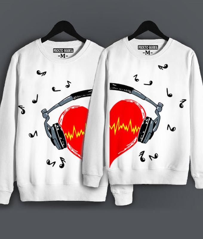 Парные свитшоты с принтом "Сердце в наушниках" Push IT Стильные брендовые свитшоты с крутым принтом. Свитшоты из хлопка для приятной повседневной носки. Печать наносится цифровым способом, поэтому принт выдержит большое количество стирок и хорошо пропускает воздух к телу. Хлопковые свитшоты с принтами удобно носить как летом так и зимой.