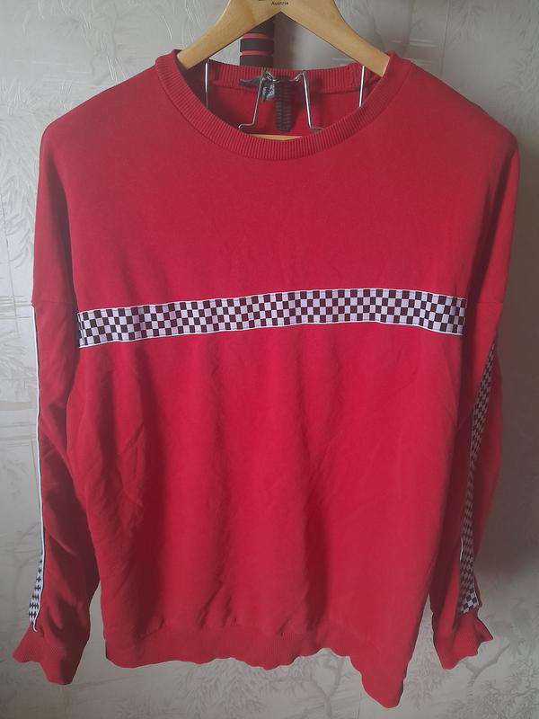 Цікавий світшот Primark в шашку, приємний до тіла і зручний, сидить оверзайз, написаний S розмір, а за фактом M-L Класно виглядає з цікавим дизайном