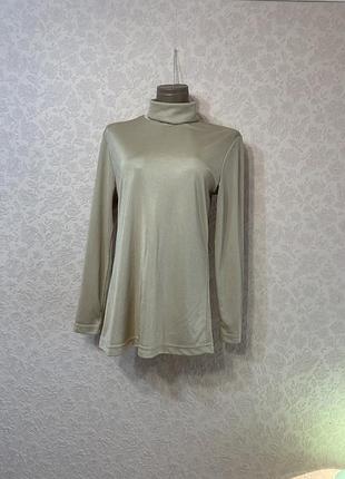 Бежевый гольф, полиэстер - 100%, структура ткани гладкая, тянется, 46-48 размер. Длина - 66 см. Ширина в грудях - 48 см. Длина рукава - 58 см. Красивый по цвету и классическим фасоном.