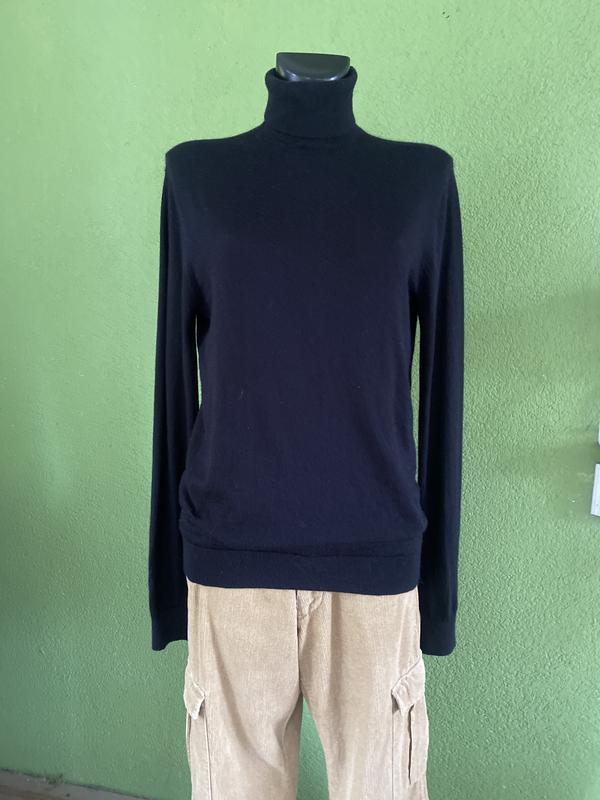 Замечательный свитер с высоким горлом из тонкой шерсти. Цвет черный. Склад:вовна-100/. Размер по набору-М. Замеры:длина-70 см, ПОГ-47 см, ПОБ-38 см., рукав-72 см. Унисекси!