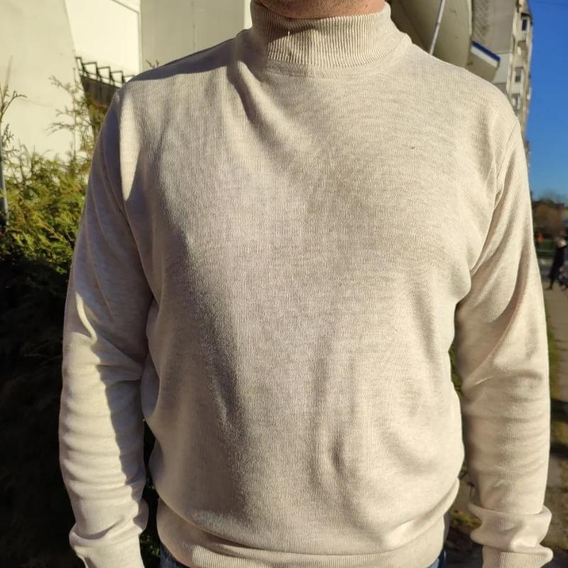 Мужской гольф с воротником стойкой и манжетами по краю и на рукавах. Качественный мягкий и приятный на ощупь, красиво тянется.